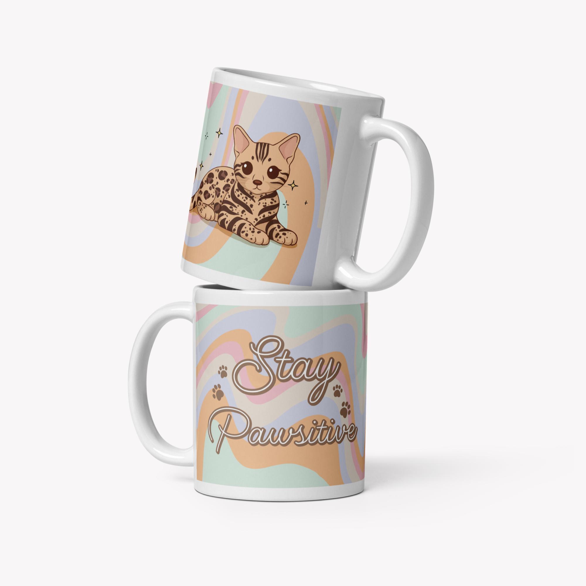Ilustrada à mão com muito amor, tem de um lado um patudo adorável e do outro a frase inspiradora: “Stay Pawsitive” 💛