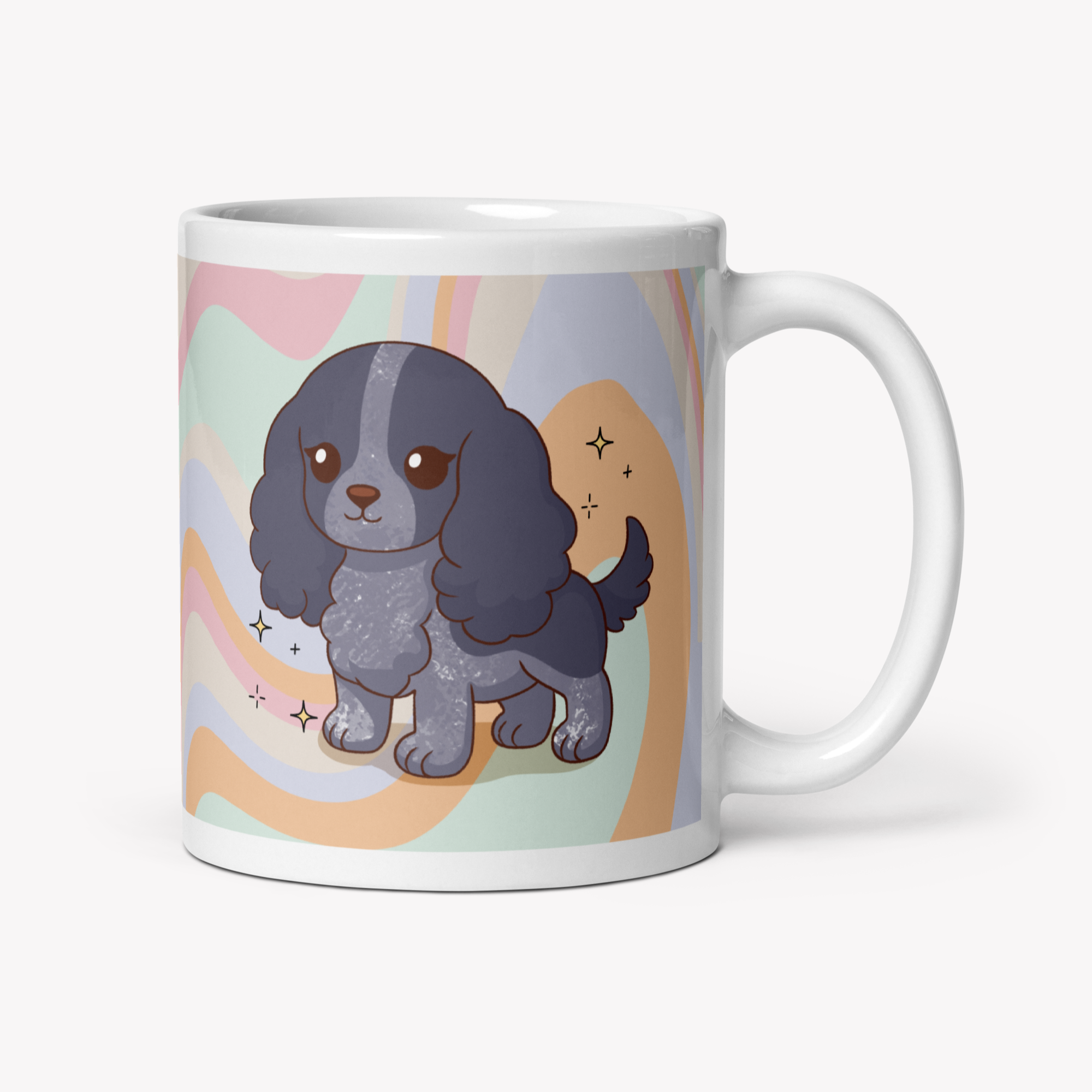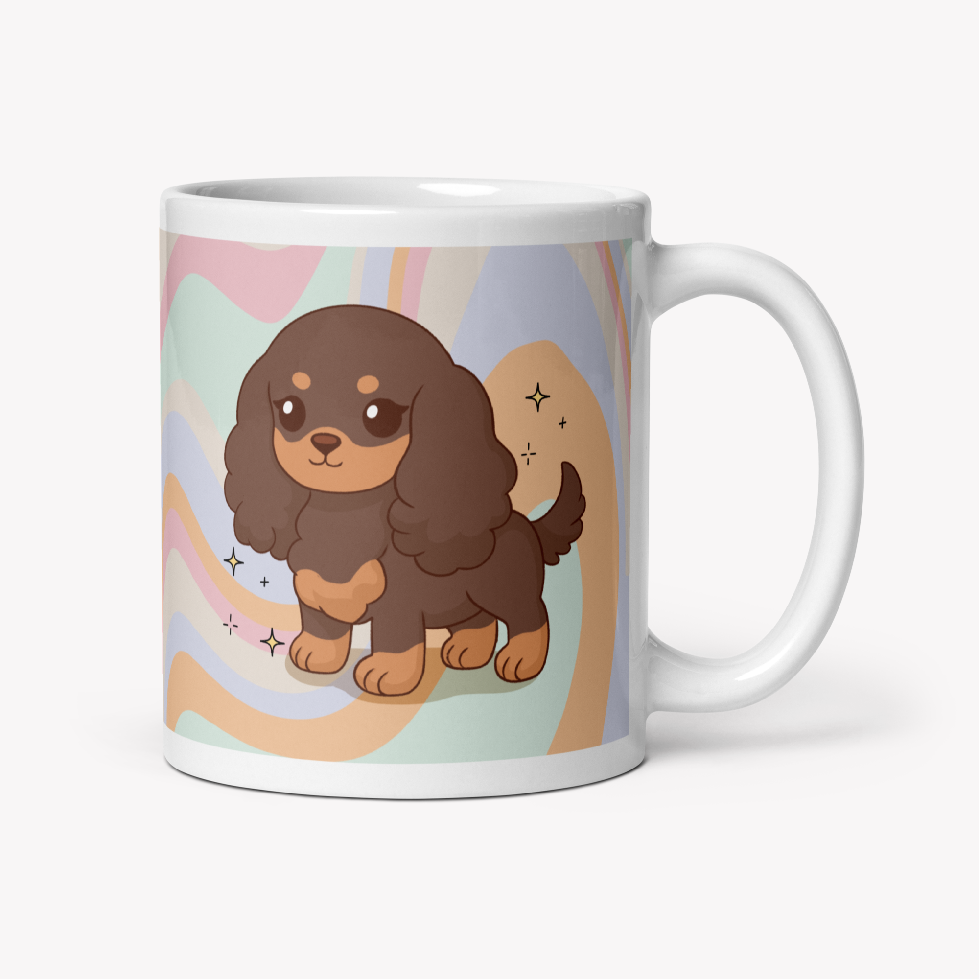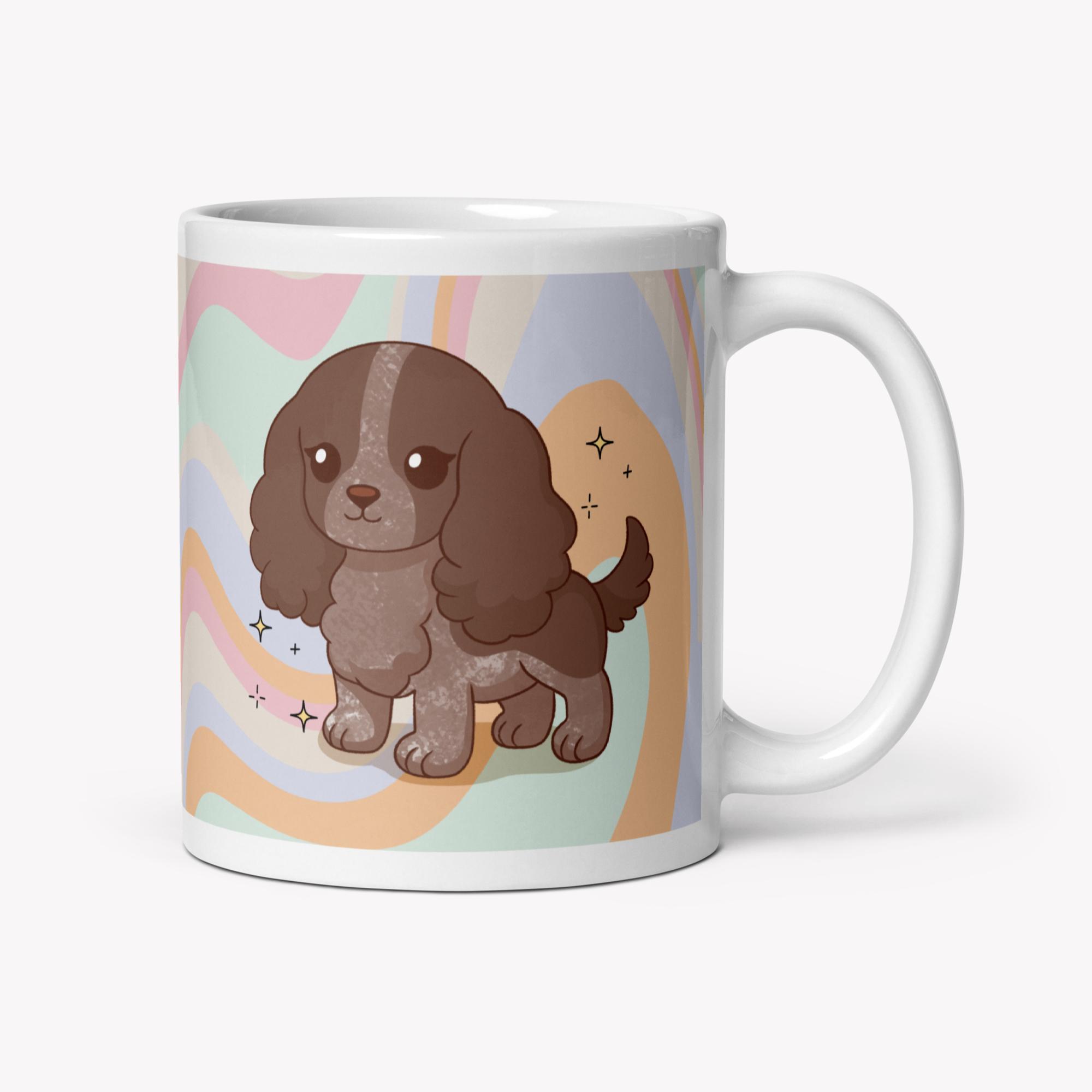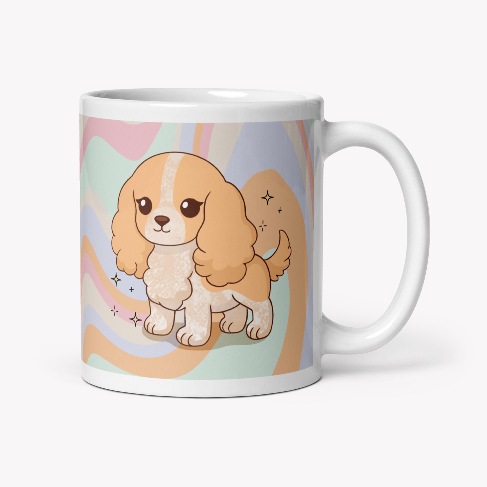 Uma caneca de 325ml com a ilustração da raça Cocker, feita para aquecer o coração de qualquer pet lover 💛