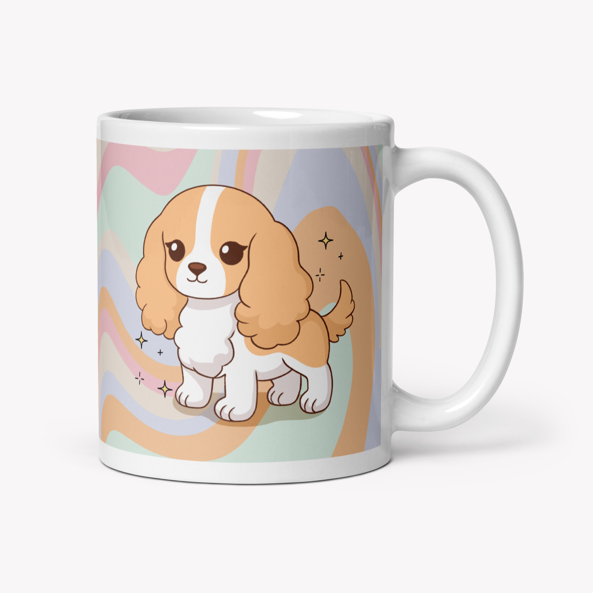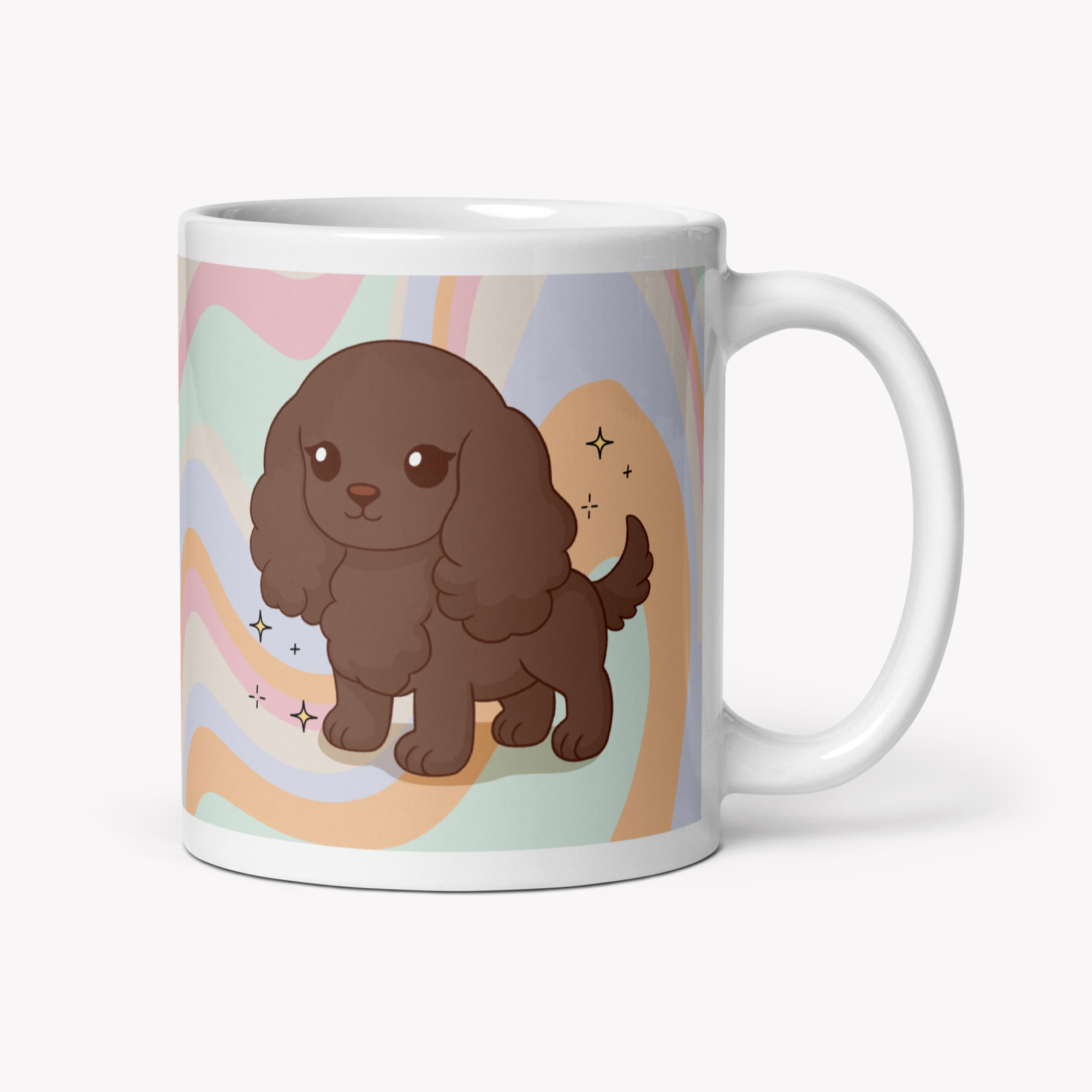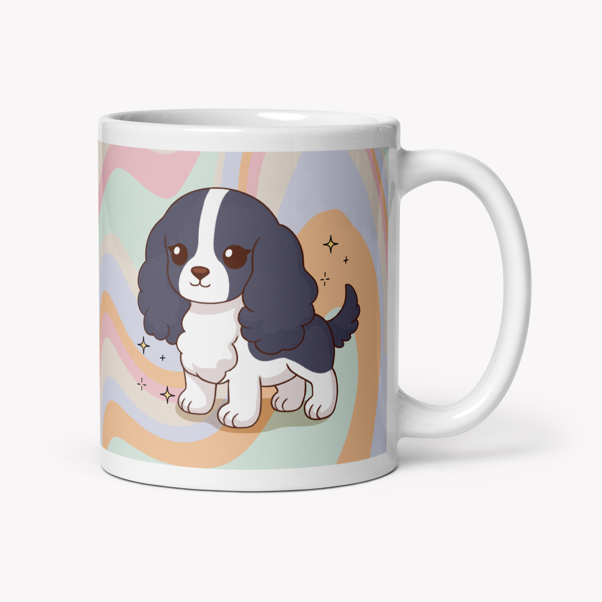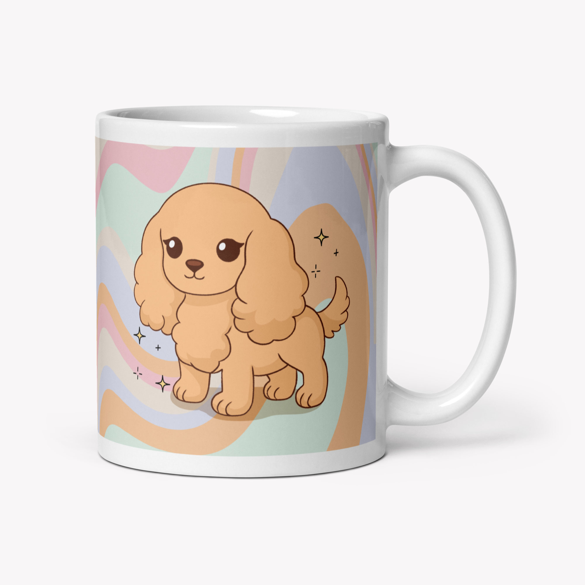 Uma caneca de 325ml com a ilustração da raça Cocker, feita para aquecer o coração de qualquer pet lover 💛