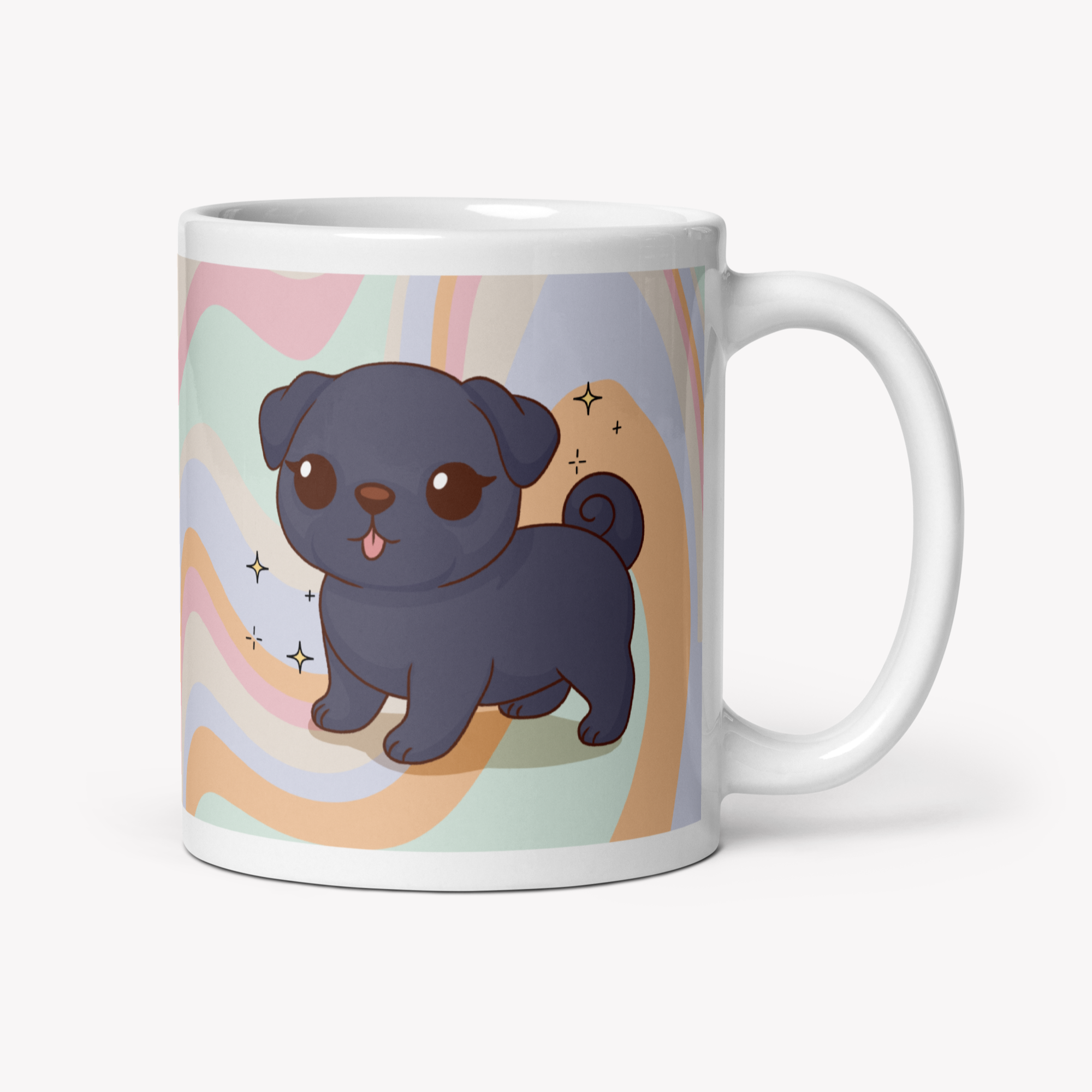 Uma caneca de 325ml com a ilustração da raça Pug, feita para aquecer o coração de qualquer pet lover 💛