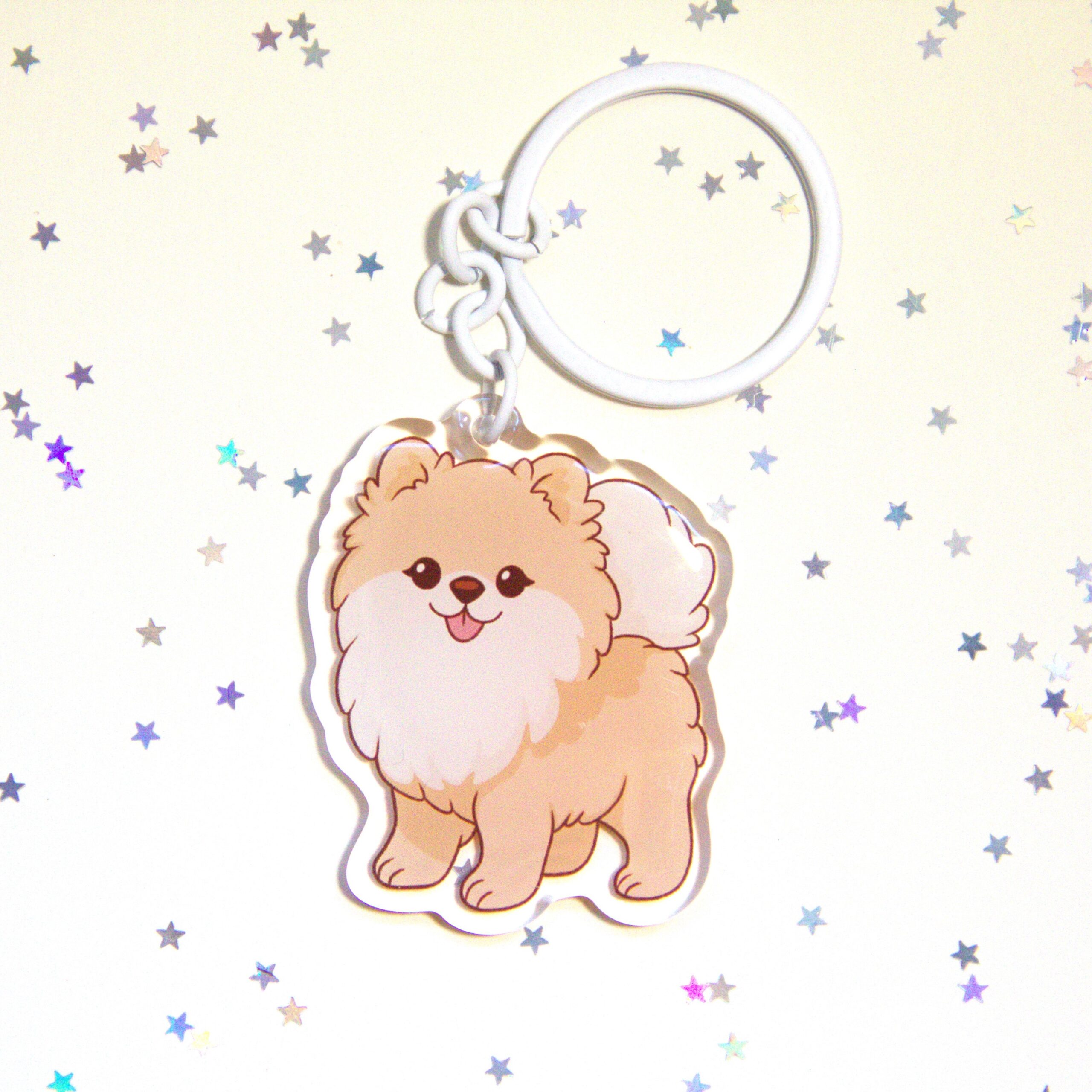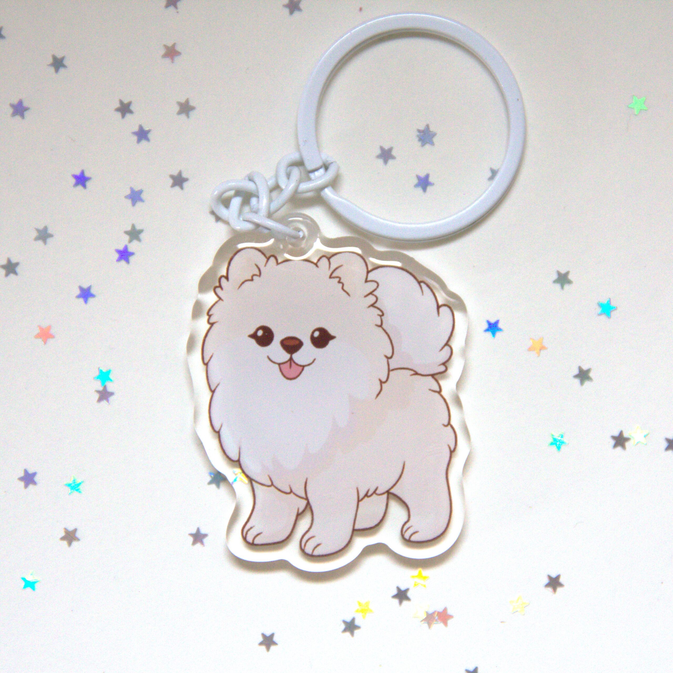 🐶Porta-chaves de Lulu da Pomerânia com ilustração desenhada à mão. Leve, resistente e cheio de personalidade!