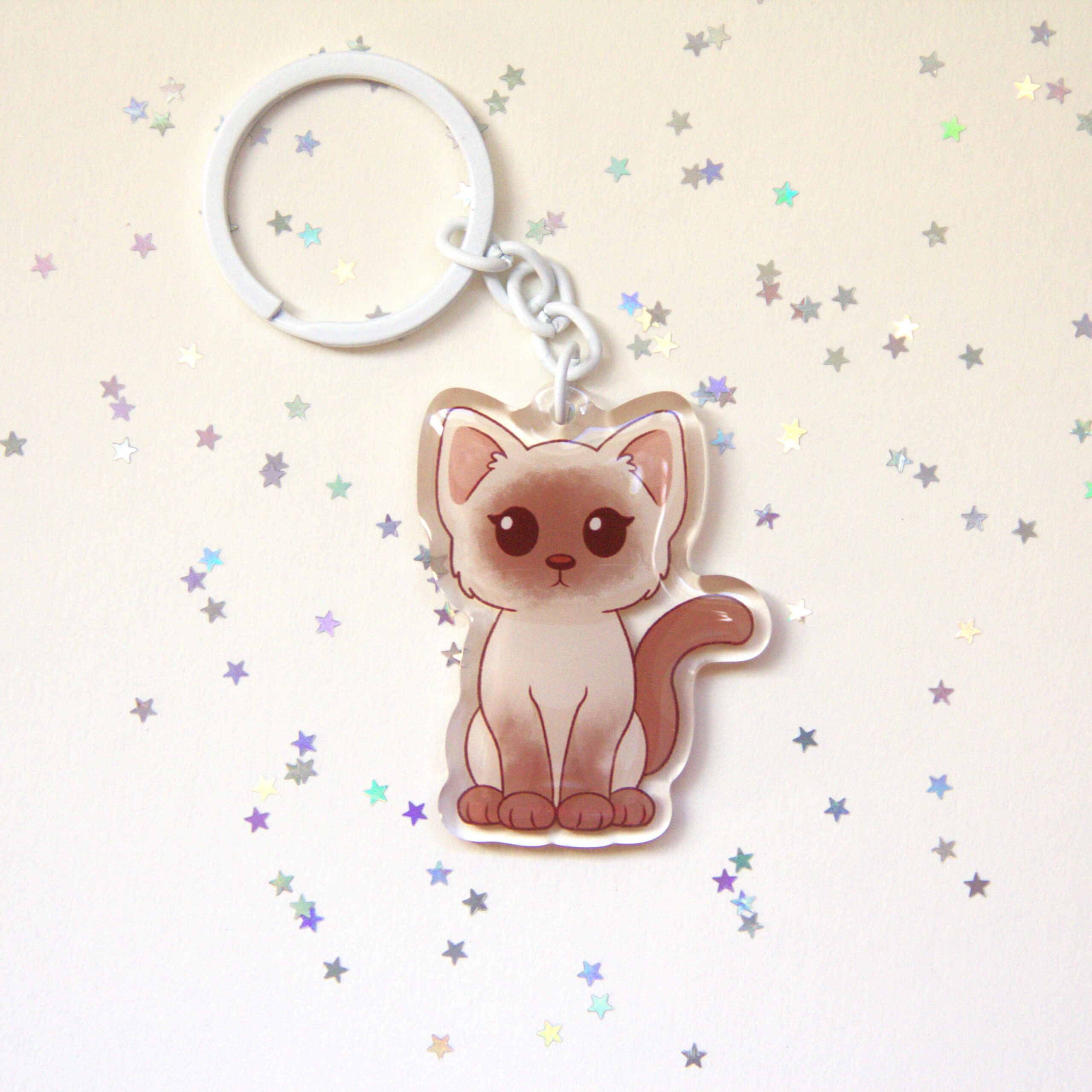 🐱 Porta-chaves de Siamês com ilustração desenhada à mão. Leve, resistente e cheio de personalidade!