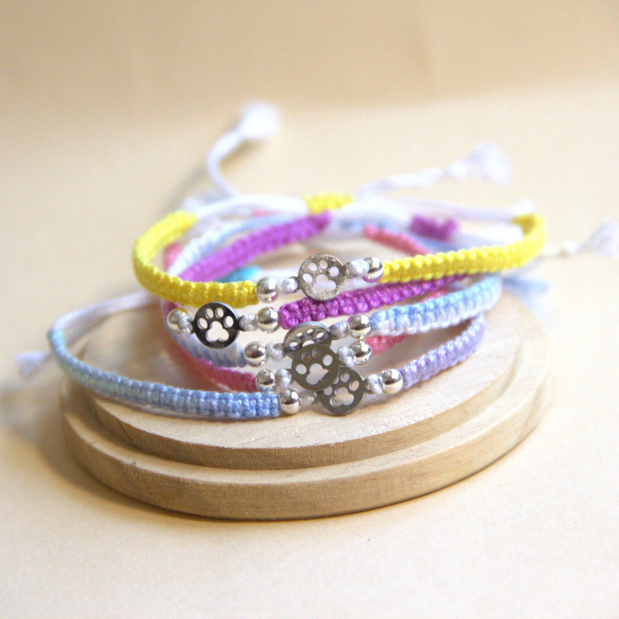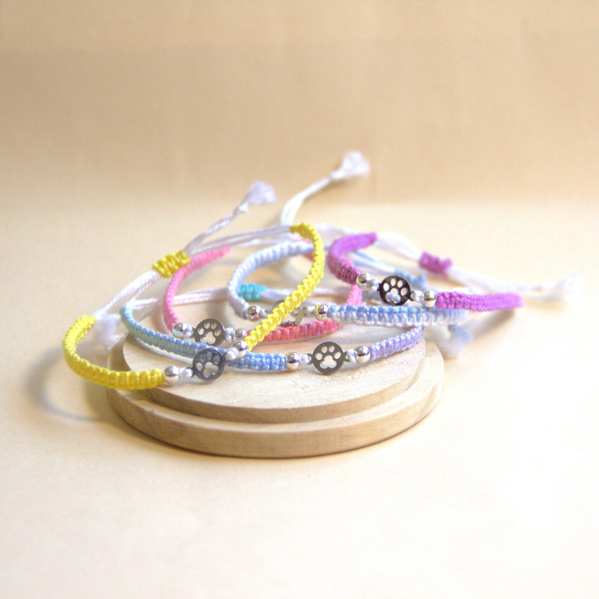 Estas pulseiras feitas à mão em macramé são leves, ajustáveis e super confortáveis — perfeitas para o dia a dia. O toque final? Um pendente delicado em forma de patinha, em aço inoxidável, que simboliza o carinho pelos nossos fiéis companheiros. 🐶🐱